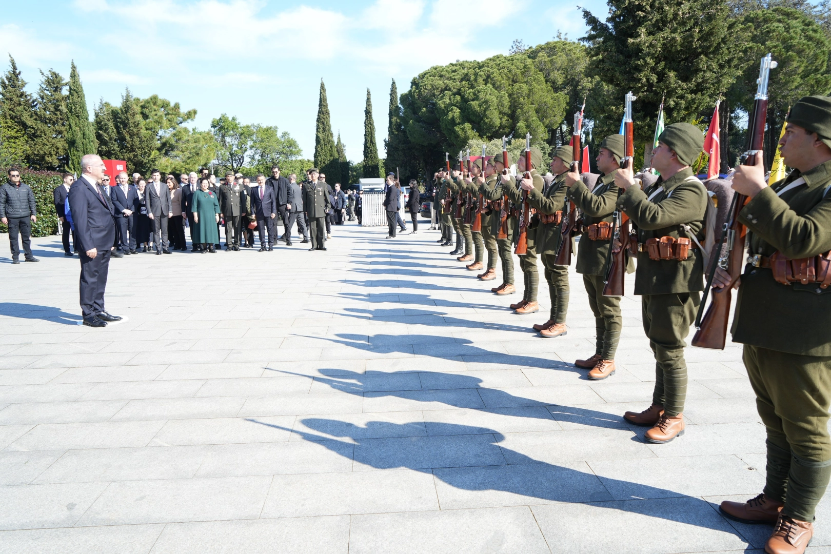 Törende konuşan Çanakkale Valisi Doç. Dr. Ömer Toraman, "Çanakkale'de ortaya çıkan bu ortak hafıza bizlere, farklılıklarımıza rağmen bir arada yaşamanın, diyalog kurmanın ve ortak değerlerde buluşmanın mümkün olduğunu açıkça göstermektedir" dedi. Çanakkale Savaşları Gelibolu Tarihi Alan Başkanı İsmail Kaşdemir ise, "Çanakkale; ne denizden ne karadan ne havadan ne de deniz altından geçilememiştir" diye konuştu. Çanakkale Kara Savaşları'nın 111. yıl dönümü töreni, Türkiye Cumhuriyeti adına Çanakkale Valisi Doç. Dr. Ömer Toraman'ın Şehitler Abidesi önünde bulunan Çanakkale Savaşları kahramanları rölyefindeki Atatürk Anıtı'na çelenk koymasıyla başladı. Şehitler için saygı duruşunda bulunulup, saygı atışı yapılmasının ardından İstiklal Marşı okundu. Şehitler Abidesi'nde düzenlenen törende konuşan Vali Ömer Toraman, "Türkiye Cumhuriyeti olarak bizler, bu tarihî mirası; barışın, iş birliğinin ve karşılıklı anlayışın güçlendirilmesi yönünde önemli bir sorumluluk olarak görmekteyiz. Geçmişin acılarından ders çıkararak, geleceği daha huzurlu ve daha güvenli kılmak ortak görevimizdir. Bugün burada, vatan savunması uğruna canlarını feda eden aziz şehitlerimizi rahmet, minnet ve şükranla anarken; aynı zamanda bu topraklarda hayatını kaybeden tüm yabancı askerleri de yad ediyoruz. Onların hatırası, bizlere barışın değerini hatırlatmaya devam etmektedir. Çanakkale'de ortaya çıkan bu ortak hafıza bizlere, farklılıklarımıza rağmen bir arada yaşamanın, diyalog kurmanın ve ortak değerlerde buluşmanın mümkün olduğunu açıkça göstermektedir. Bugün bizlere düşen en önemli sorumluluk; bu anlamlı mirası gelecek nesillere doğru şekilde aktarmak, barış kültürünü güçlendirmek ve insanlığın ortak değerlerini korumaktır. Bu duygu ve düşüncelerle; başta Cumhuriyetimizin kurucusu Gazi Mustafa Kemal Atatürk ve silah arkadaşları olmak üzere, tüm kahramanlarımızı rahmet ve minnetle anıyor; bu anlamlı törene katılım sağlayan siz değerli misafirlerimize teşekkür ediyorum. Barışın, dostluğun ve karşılıklı anlayışın hâkim olduğu bir gelecek temennisiyle, sizleri saygıyla selamlıyorum" dedi. Anma töreninde konuşan Çanakkale Savaşları Gelibolu Tarihi Alan Başkanı İsmail Kaşdemir, "Tarihin en çetin mücadelelerinden birine sahne olan Çanakkale'de, Kara Muharebeleri'nin 111. yıl dönümünde sizlerle birlikte olmaktan büyük bir onur duyuyorum. Bugün burada, yalnızca bir askeri mücadeleyi anmak için değil; insanlık tarihine derin izler bırakan bir dönemin hatırasını yaşatmak, o günlerin fedakârlıklarını ve acılarını ortak bir anlayışla yâd etmek üzere bir araya gelmiş bulunuyoruz. Çanakkale, savaşın yıkıcılığını ve insan hayatı üzerindeki ağır bedelini en açık şekilde ortaya koyarken; aynı zamanda cesaretin, fedakârlığın ve insanlık onurunun en güçlü şekilde tecelli ettiği bir tarih sahnesi olmuştur. Aradan geçen uzun yıllara rağmen, Çanakkale'nin hatırası ilk günkü anlamını ve önemini korumaktadır. Çünkü burada yaşananlar, yalnızca geçmişe ait bir hatıra değil; aynı zamanda günümüz dünyası için güçlü mesajlar barındıran evrensel bir tecrübedir" diye konuştu. Çanakkale'nin buluşma, diyalog ve anlayışın simgesi haline geldiğini söyleyen Alan Başkanı Kaşdemir, "Bu anlamlı anma törenleri, geçmişte cephelerde karşı karşıya gelen milletleri bugün aynı değerler etrafında bir araya getirmektedir. Bu yönüyle Çanakkale; ayrışmanın değil buluşmanın, çatışmanın değil diyalogun, düşmanlığın değil karşılıklı saygı ve anlayışın simgesi haline gelmiştir. Çanakkale Kara Muharebeleri'nin başlangıcının 111. yıl dönümü törenleri vesilesiyle bir araya gelmiş bulunmaktayız. Tarihi Alan Başkanlığı olarak, davetimize icabet ettiğiniz için sizlere çok teşekkür ediyor ve sizleri saygıyla selamlıyoruz. Hoş geldiniz, sefalar getirdiniz. Sözlerimin başında, Çanakkale'yi geçilmez yapan aziz şehitlerimizi ve kahraman gazilerimizi yaptığımız bu mübarek topraklarda bir ölüm-kalım mücadelesi vererek büyük bir zafer kazanan ve rahmet ve şükranla anıyor, o büyük insanları hayırla yâd ediyorum. Ve yine, 111 yıl önce ülkeleri için buraya savaşmaya gelen İtilaf Devletleri askerlerini de saygı ile hatırlıyor, hayatlarını kaybeden askerlerin artık bu toprakların bir evladı olduğunu, barış ve huzur dolu bu topraklarda Mehmetçiklerle yan yana ve koyun koyuna yattıklarını bir kez daha ifade ediyorum" ifadelerini kullandı. Çanakkale Kara Muharebelerinin dünya tarihinde emsali az görünen bir muharebe olduğunu vurgulayan Alan Başkanı Kaşdemir, "Türk milleti, Çanakkale'de büyük ve şanlı bir vatan müdafaası yapmış ve başarılı olmuştur. Çok açık ve haklı bir zafer kazanmıştır. Üzerinde tören yaptığımız bu topraklar, büyük acılara ve gözyaşlarına şahitlik etmiştir. İnsanlık tarihinin gördüğü en büyük ve en çetin savaşlardan birisi bu topraklarda yaşanmıştır. Türk milleti, birlik ve beraberlik içerisinde çok önemli bir mücadele vermiş ve Çanakkale'yi geçilmez yapmıştır. Genç neferler ve genç komutanlar, büyük bir sorumluluk duygusu ve büyük bir cesaretle, tarihine yakışır bir mücadele sonunda galip gelmeyi bilmişlerdir. Zaferin mimarları olan askerler 20'li yaşların başında, komutanlar ise 30'lu yaşların başındaydılar. Bu kahraman gençler, omuzlarındaki tarihi sorumluluğu çok iyi idrak eden o nesil, Çanakkale'de dünyaya meydan okumuş ve devrin süper güçlerine kafa tutmuşlardır. Yaklaşık 8,5 ay süren, şanlı ve şerefli müdafaanın sonunda galip gelen, zaferleri ve mazisi insanlık tarihi ile başlayan kahraman Türk ordusu olmuştur" diye k
