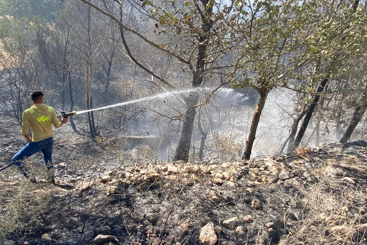 Çanakkale Orman Bölge Müdürlüğüne bağlı kara ekipleri, Ayvacı ilçesi Gemedere mevkisindeki çöplük alanda dün başlayan ve büyük oranda kontrol altına alınan yangınla ilgili çalışmalarını arazözlerle sürdürüyor.
