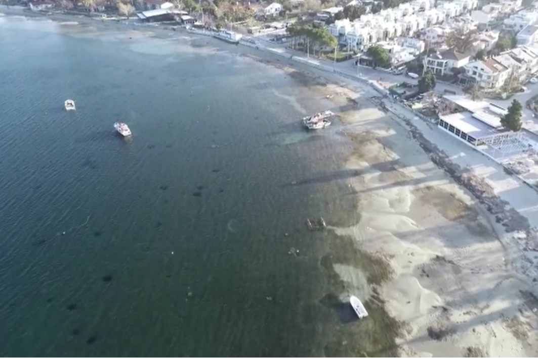 Deniz kıyısında yaşanan su çekilmesiyle sahil kesimlerinde küçük adacıklar oluştu.