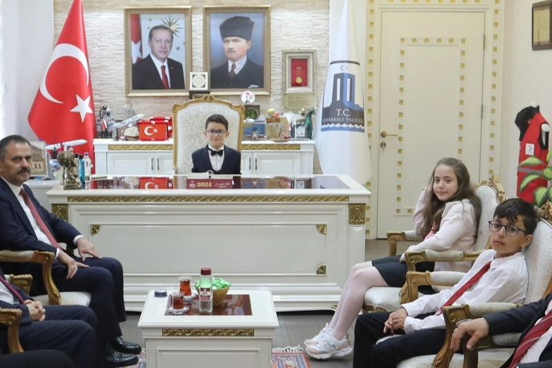 Vali Yardımcısı Hakkı Uzun, İl Milli Eğitim Müdürü Ferhat Yılmaz, Barbaros Hayrettin Paşa İlkokulu Müdürü Suat Ürüt ve sınıf öğretmeni Gürcan Eroğlu'nun da eşlik ettiği ziyarette Vali Aktaş, makamını bir süreliğine öğrencilere devretti.