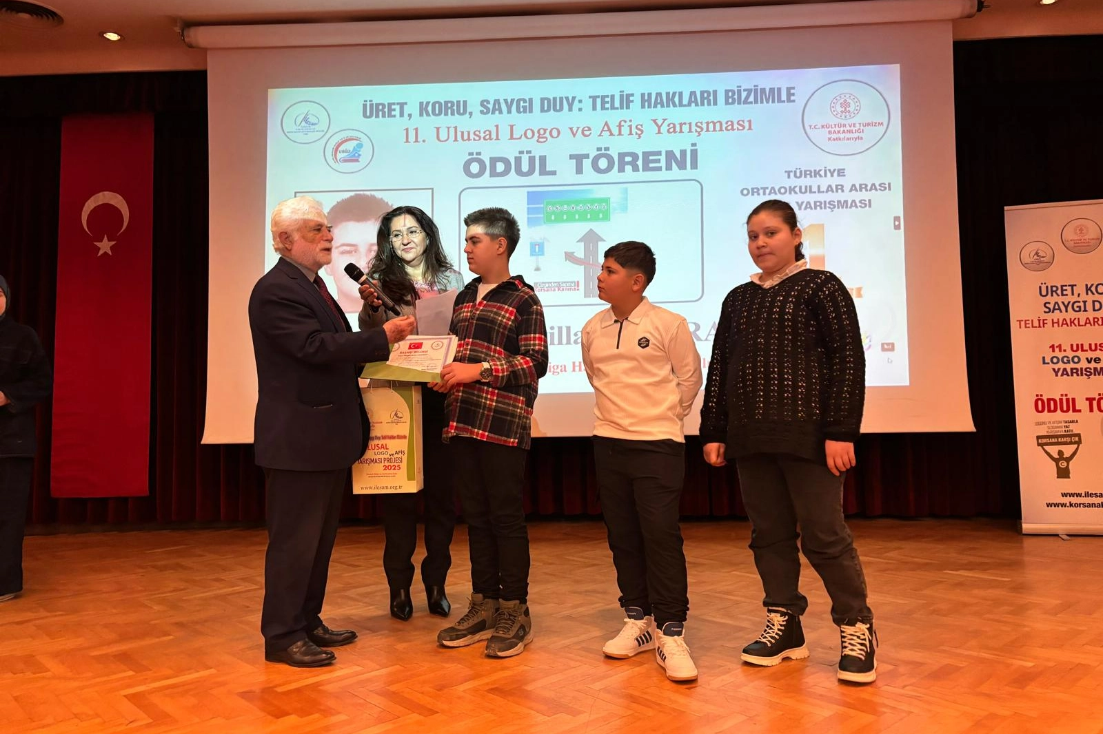 Ortaokul ve lise öğrencilerinin "eser" kavramı ve telif hakları konusunda bilinçlendirilmesi, korsanla mücadeleye teşvik edilmesi amacıyla düzenlenen yarışmaya tasarladığı afişle katılan Biga Hamdibey Ortaokulu 7'nci sınıf öğrencisi Noyan Atilla Demiray birincilik elde etti.