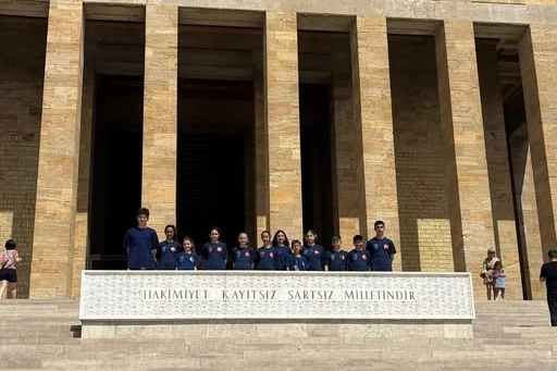 Takım sporcuları ve antrenörleri, Gazi Mustafa Kemal Atatürk’ün huzurunda saygı duruşunda bulunarak şampiyona öncesi moral depoladı.