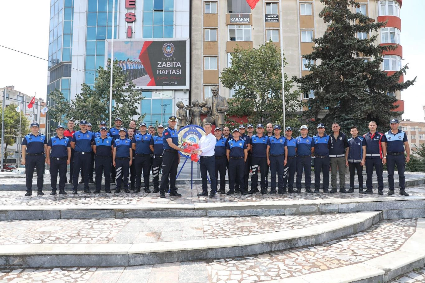 Kapaklı Belediye Başkanı Mustafa Çetin, Zabıta Haftası sebebiyle Atatürk Anıtı önünde düzenlenen çelenk sunma törenine katıldı.