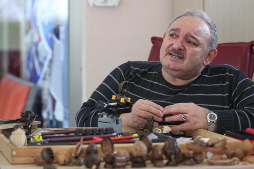 "Bu iş biraz sabır işi. Ben kullandığım malzemelerin hiçbirine para vermiyorum, bir bedel yok burada, bir emek var, bir sabır var. Sonuçta bu ceviz kabuğu yanacak, çöpe gidecek. Ben bunları değerlendiriyorum, içine ne varsa koyuyorum. Menteşe yapacaksam tel parçaları topluyorum, neyi görüyorsam atılmış, benim bir çantam var, onun içine atıyorum, sonra ayırıyorum. Ben cevizi işlerken başka hiçbir şeyi görmüyorum, işime odaklanıyorum, onun içine giriyorum sadece. Etrafımda ne oluyor, ne dönüyor hiç bilmiyorum. Yani biri seslense bana 'evet, evet' diyorum ama sonuçta dünyam onun içinde. O cevizin içinde o günü yaşıyormuş, o ortamda bulunuyormuş gibi hissettiğinizde sonuca varıyorsunuz. Benim dünyam bu cevizin içinde."