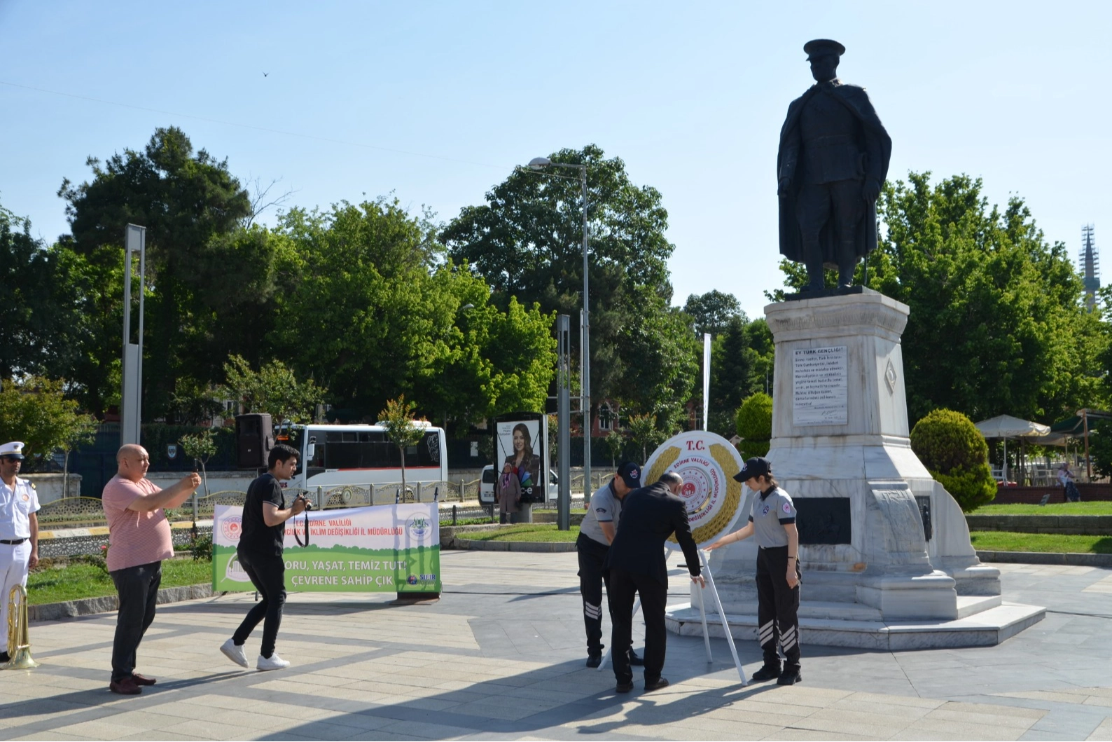 Edirne Valiliği Çevre, Şehircilik ve İklim Değişikliği İl Müdürlüğü tarafından Atatürk Anıtı’na çelenk sunularak 5 Haziran Dünya Çevre Günü ve 5-9 Haziran Türkiye Çevre Haftası kutlandı. Programa Çevre, Şehircilik ve İklim Değişikliği İl Müdürü Engin Öztürk, kurum müdürleri, vatandaşlar ve çok sayıda öğrenci katıldı.