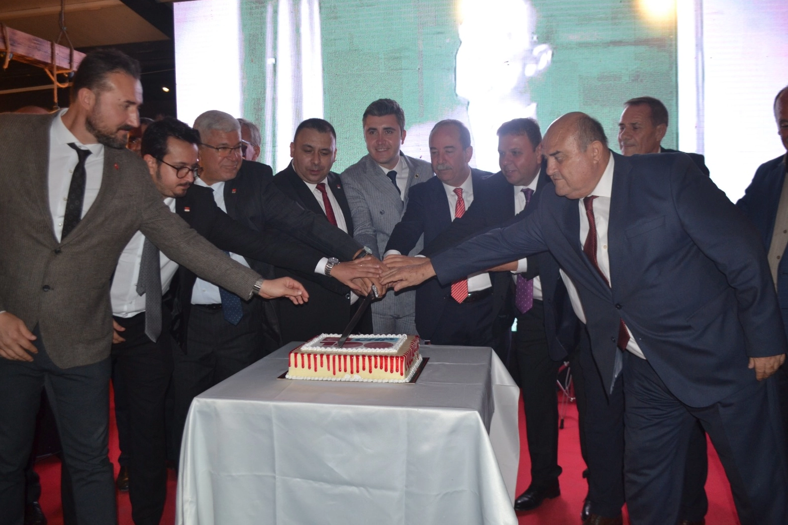 İl Başkanı Samet Kahraman öncülüğünde, CHP’li belediye başkanları ve ilçe başkanları 100’üncü yıl pastasını kestiler ve partiye yeni katılanlar sahneye davet edilerek parti rozetleri takıldı.