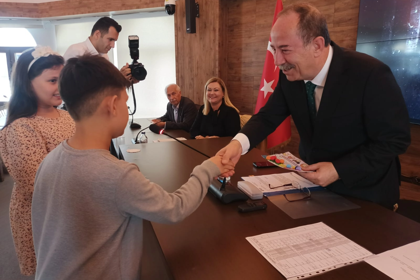 Edirne Belediyesi Meclisi’nin bugün düzenlenen olağanüstü toplantısının sona ermesinin ardından çocuklar, meclis salonunda Belediye Başkanı Recep Gürkan’ı ziyaret etti. Belediye meclisi salona giren çocukları Gürkan karşılarken; çocuklar da Gürkan’a 20 Kasım Dünya Çocuk Hakları Günü’nde düzenleyecekleri etkinlik için hazırladıkları davetiyeyi takdim etti.