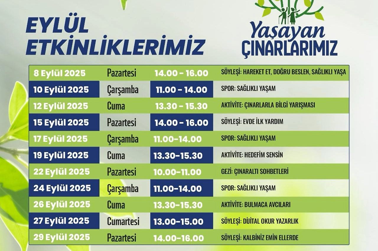 Belediye yetkilileri, etkinliklere katılmak isteyen vatandaşların 444 99 59 numaralı telefondan Sosyal Yardım İşleri Müdürlüğü’ne ulaşabileceğini belirtti.