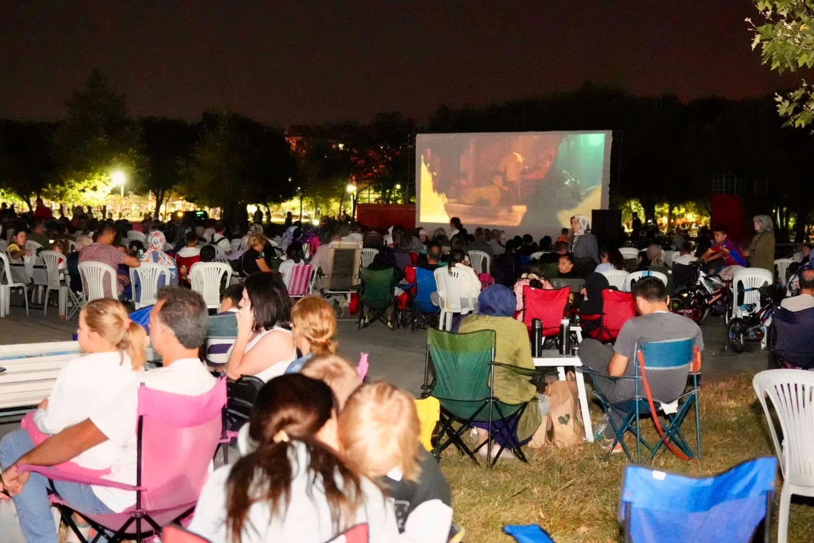 Çorlu Belediyesi’nin organizasyonuyla gerçekleştirilen etkinlikte, açık havada yıldızların altında film izleme keyfini yaşayan vatandaşlar, nostaljik sinema atmosferini aileleriyle birlikte deneyimledi.