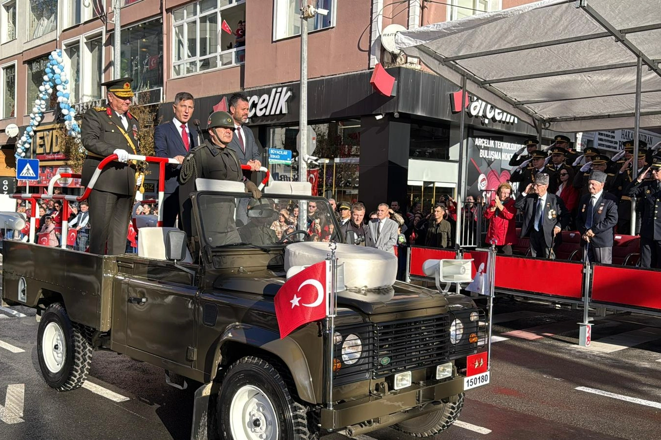 Öğrenciler ile askeri birliklerin geçiş seremonilerinin ardından, askeri araçlar da geçiş yaptı.