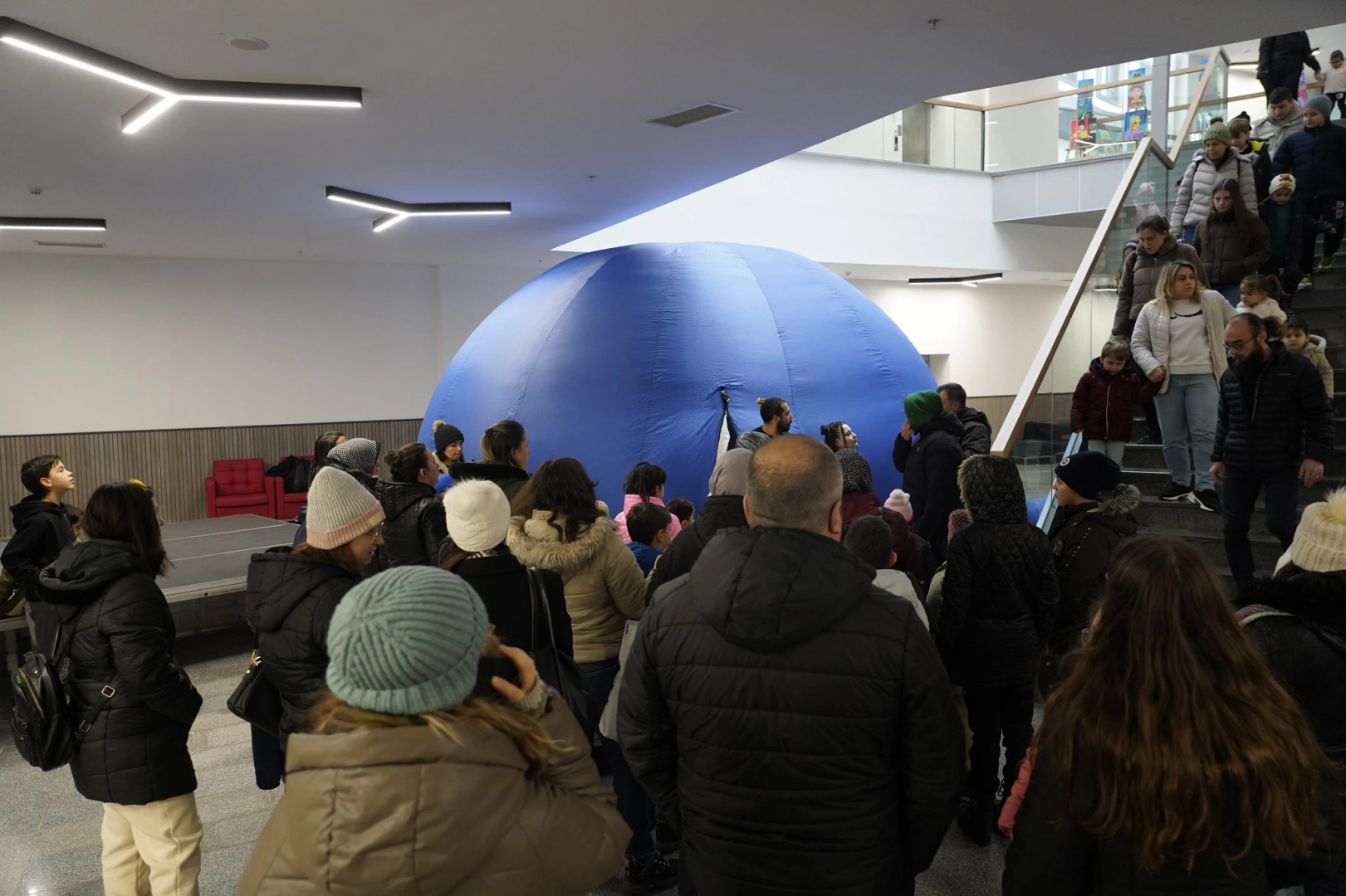 Yarıyıl Şenliği programı çerçevesinde gerçekleştirilen planetaryum uzay çadırı gösterisinde çocuklar, uzaya keyifli bir yolculuk yaptı. “Uzayın Kapıları Aralanıyor” adlı etkinlikte minik kâşifler; gezegenler, yıldızlar ve evrenin gizemleri hakkında bilgi edinerek hem eğlenceli hem de öğretici anlar yaşadı.