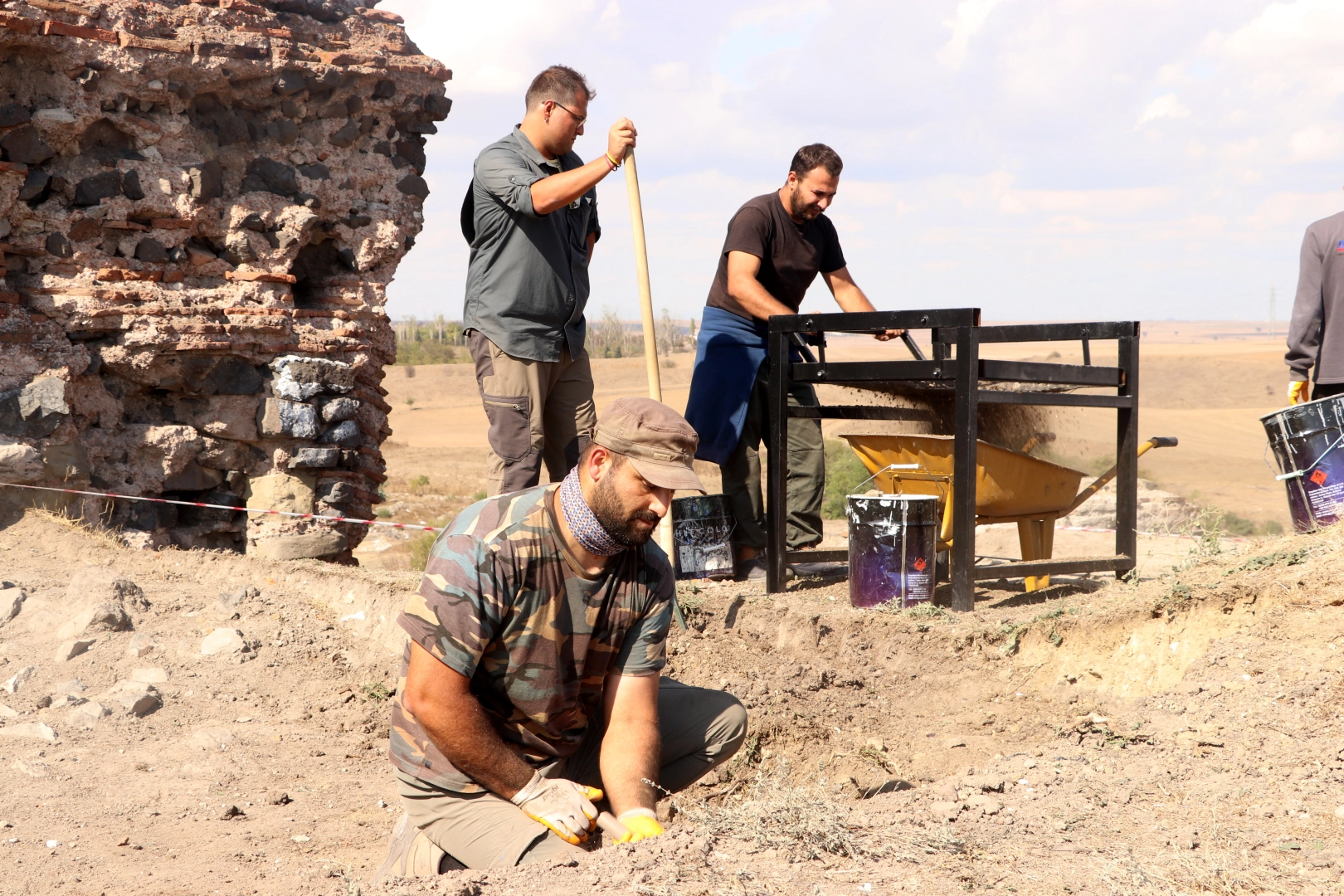 Kazı alanında 4 işçi, 2 arkeolog, 1 restoratör ve 7 gönüllü öğrenci tarafından yapılan çalışmalarda, çeşitli sikkeler, ok uçları ve sırlı seramik parçaları bulundu.