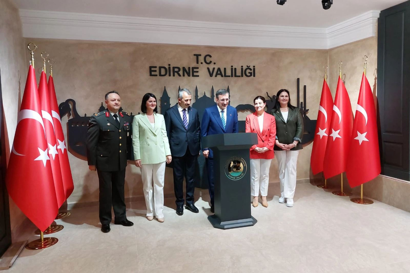 Yılmaz, ilk olarak Edirne Valiği'ni ziyaret etti. Yılmaz'ı Edirne Valisi Yunus Sezer, Edirne İl Emniyet Müdürü Onur Karaburun, Edirne Garnizon Komutanı Tuğg Berat Acar, Edirne İl Jandarma Komutanı Jandarma Albay Hacı Ali Büber, kurum müdürleri ve siyasi parti temsilcileri törenle karşıladı. Yılmaz, selamlamadan sonra Edirne Valiliği'nin Şeref Defterini imzaladı.