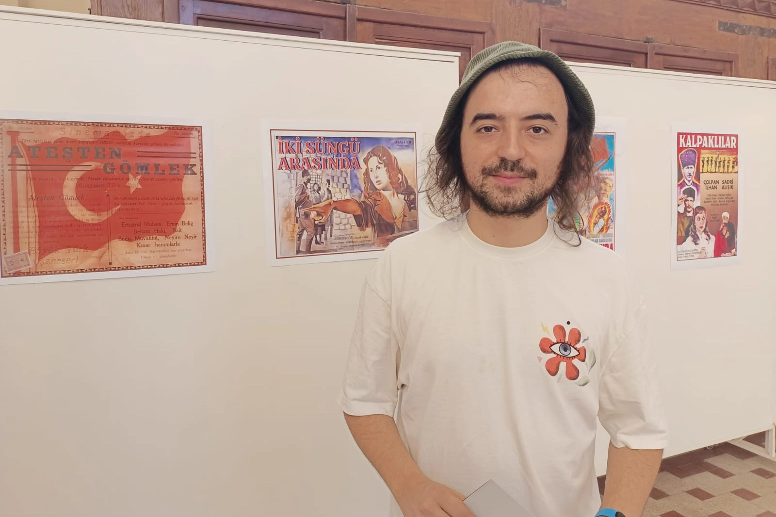 Çelebi, Güzel Sanatlar Fakültesi’nin düzenlediği 100’üncü Yıl Festivali kapsamında üçüncü sergisini açtığını belirterek; “Sergideki eserler, 1920 ile 1960 yılları arasındaki filmlerin afişlerini içeriyor. Bu afişleri, eski kütüphanelerden, galerilerden, bazı özel koleksiyonlardan, düşük çözünürlüklü internet arvişlerinden bularak film afişi yapmak için 3 ay çalıştım. Bazılarını boyadım, bazılarını tekrar çizdim. Bazılarını ise filmden tekrar kolaj alarak yaptım. Eski, bozulmuş ve bayağı eprimiş durumdaydılar. Çünkü neredeyse 80 yıllık film afişleridir. Günümüzde kayıtları olmayan şeyler. O yüzden onları tekrar sinema dünyasına kazandırmak için böyle bir dijital çalışma yaparak, bazen yapay zekayı da kullanarak afişleri tekrar tasarladım” dedi.