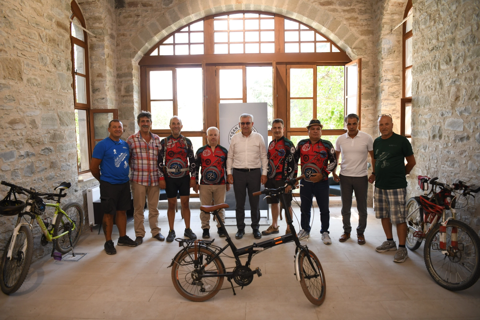 Daha sonra söz alan Eşme, desteklerinden ötürü Helvacıoğlu’na teşekkür ederek şunları söyledi: “Bir derneğin tek başına altından kalkamayacağı büyüklükte bir festival düzenleniyoruz. Bu yıl festivalimizin 10. yılı. 10 yıldan bu yana bu konuda mücadelemizi sürdürüyoruz. Türkiye’de çok saygın bir bisiklet festivali. Bunu el ele başardık. Çok yoğun bir katılım var. İlçemiz dışından, İlimiz dışından ve Almanya, Yunanistan, Bulgaristan ile Polonya gibi farklı ülkelerden gelenler olacak. Ulusal ve uluslararası anlamda talep gören festival. Derneğimizin de 30. yılı. 14 dakikada kontenjan doldu. Amacımız ülkemizin değişik bölgelerinden ve yabancı ülkelerden insanları buraya çekmek. Bu yılın teması ‘Yaşasın Cumhuriyet’. Festivalimiz, 8-9-10 Eylül tarihlerinde yapılacak. Gerçek macera yaşamak isteyenler güzel bir festival yaşayacak. Bölgemizde sadece 45 günlük bir deniz sezonu olmadığını, doğal turizmi potansiyeli olduğunu göstermek istiyoruz.”