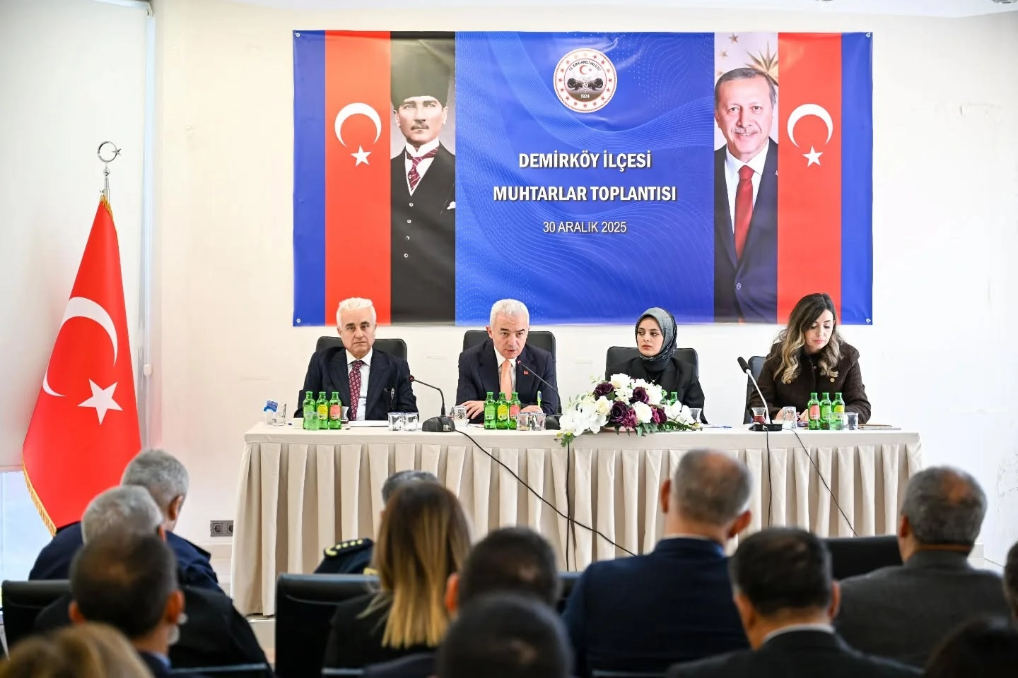 Kırklareli Valisi Uğur Turan, Demirköy ilçesinde muhtarlarla bir araya gelerek ilçenin huzuru, güvenliği ve gelişimine yönelik yürütülen çalışmalar ile planlanan projeleri değerlendirdi. Demirköy Muhtarlar Toplantısı; Vali Uğur Turan başkanlığında, Vali Yardımcısı Ahmet Çırakoğlu, Demirköy Kaymakamı Gizem Bayguş, İl Emniyet Müdürü Sinan Çamuroğlu, İl Jandarma Komutanı Jandarma Kıdemli Albay Yusuf Eskitürk, İl Özel İdaresi Genel Sekreter Vekili Yüksel Akış, Demirköy Belediye Başkan Vekili Hamdi Gülsoy, İğneada Belediye Başkan Vekili Erdem Gümüşsoy, İl İdare ve Denetim Müdürü Emine Belma Arslantaş, meclis üyeleri, ilgili daire müdürleri ile köy ve mahalle muhtarlarının katılımıyla gerçekleştirildi.