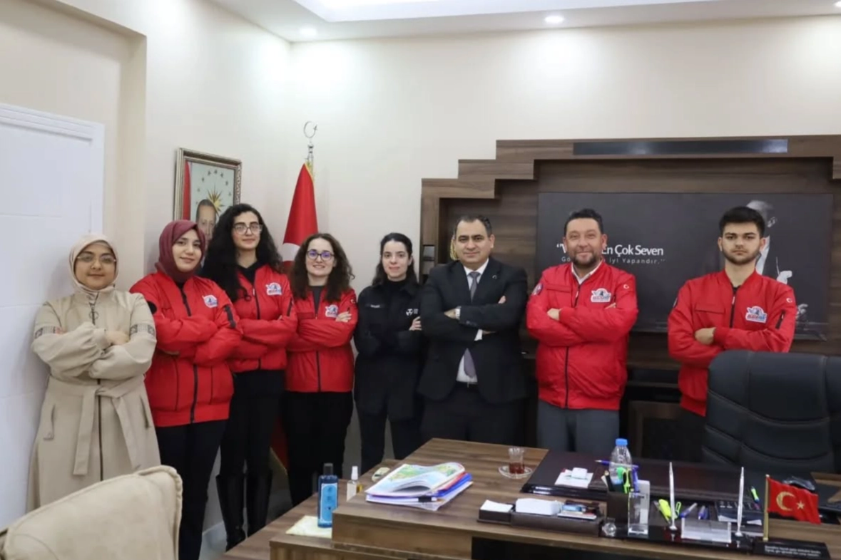 Kırklareli Gençlik Merkezi Müdürü Ahmet Şimşek, Türkiye Teknoloji Takımı Vakfı sorumluları ve öğrenciler, Vize Kaymakamı Kemal Balaban’ı makamında ziyaret etti.