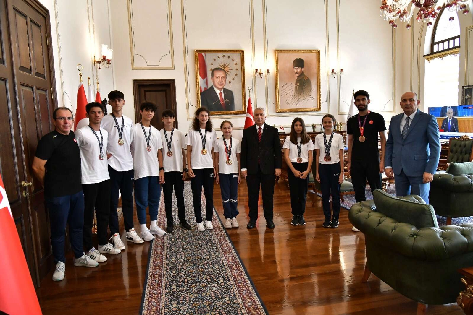 Valilikten yapılan açıklamaya göre, Yıldırım başarılarından dolayı tebrik ettiği sporcularla bir süre sohbet etti.