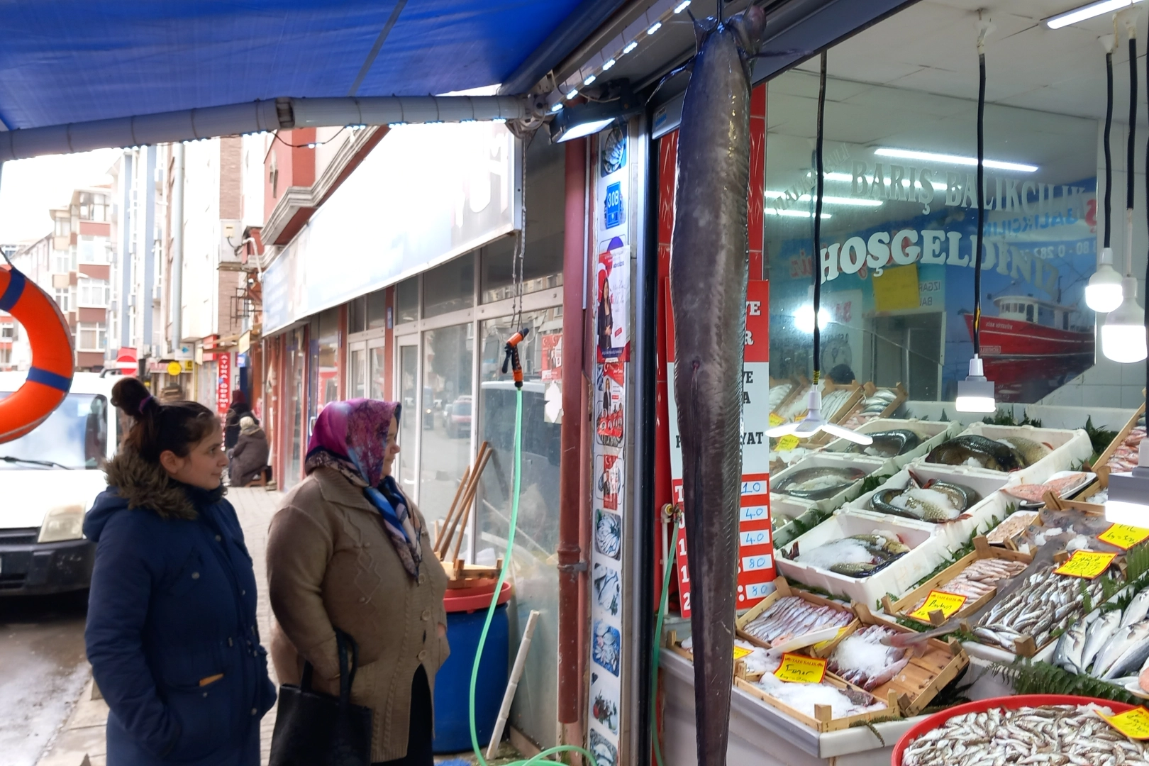 Saroz Körfezi’nde balıkçıların ağına takılan ve 5 kişi tarafından zor yakalanan 2 metreye yakın 45 kiloluk müren balığı, Çorlu ilçesi Şeyh Sinan Mahallesi Şehit İrfan Atasayar Sokak üzerindeki bir balıkçıda tezgaha konuldu. Yoldan geçerken dev balığı gören vatandaşlar hayretini gizleyemezken, balığın yanına yaklaşıp fotoğraf çekmeden de edemedi. Müşteri ve vatandaşların ilgisinden mutluluk duyduklarını ifade eden balıkçı Barış Bayırlı, büyük balık yakalamanın zor ve zahmetli olduğunu söyledi. Bayırlı, yaklaşık 2 metre boyundaki balığı 2 bin liraya satacağını ifade etti.