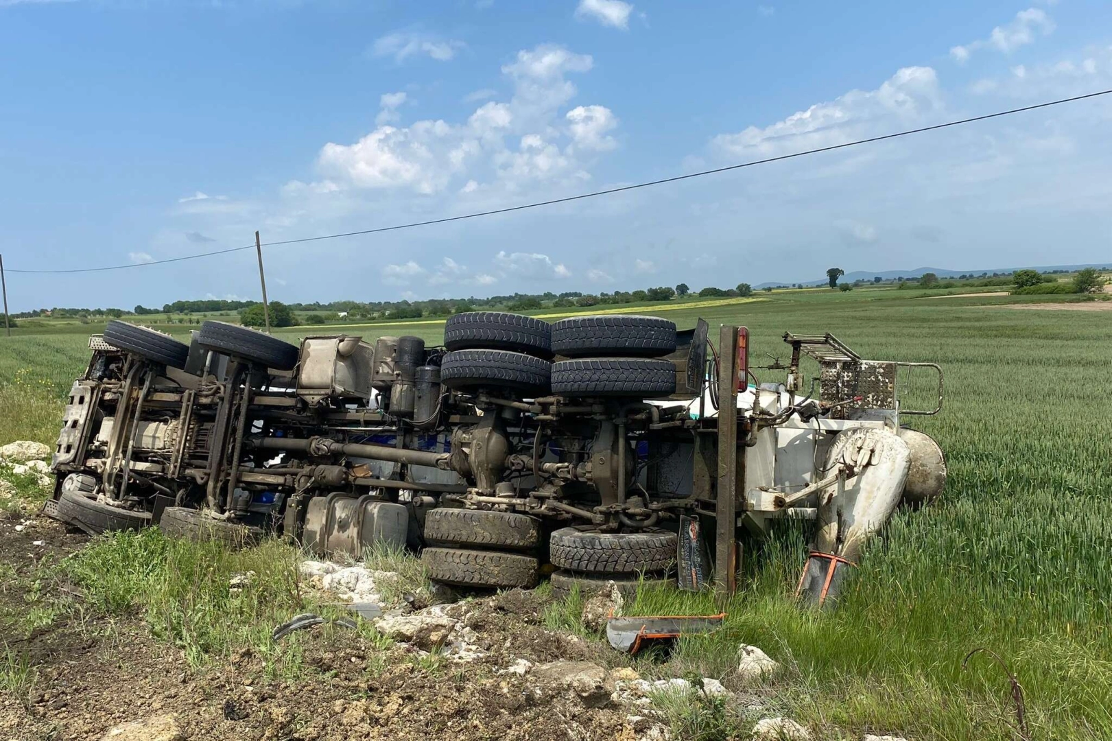 Tekirdağ'ın Çerkezköy ilçesinde meydana gelen trafik kazasında, H.G. yönetimindeki 59 ** 822 plakalı beton mikseri, sürücüsünün iddiasına göre direksiyonun kilitlenmesi sonucunda yoldan çıkarak yan yattı.