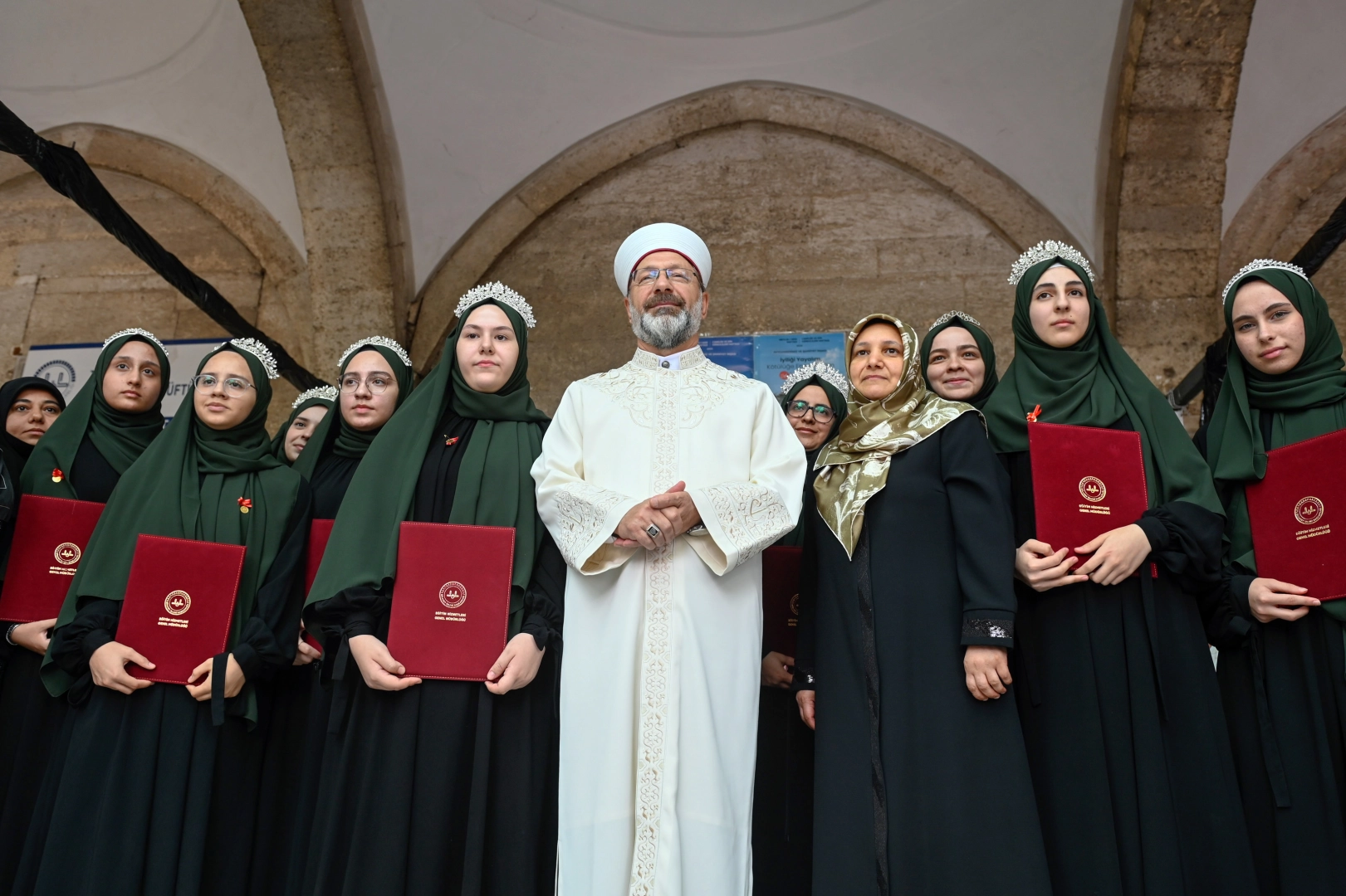 Erbaş, yeni nesle Kur'an ahlakının anlatılması gerektiğini ifade ederek, "Gençlerimize, çocuklarımıza, neslimize, Kur'an ahlakını anlatmak zorundayız. Önce biz yaşayacağız, rol model olacağız onlara. Örnek olacağız. Allah resulü efendimizin mevlidi nebisinin seneyi devriyesinde, onun en büyük mucize olarak getirdiği Kur'an-ı Kerim'i bilmeyenler varsa öğrensin, öğrenenler okusun, okuyanlar, gücü yetenleri hıfzetsin, hafız olsun. İşte buradaki yavrularımız gibi. Netice itibarıyla hedef Kur'ani bir hayattır, Kurani bir ahlaktır. Kur'an'a göre hayatımızı tanzim etmektir. Başka çıkar yol yok. Başka kurtuluş yok. Kuran'dan başka kurtuluş yok. Kuran'dan başka sığınacağımız bir kitap yok. Kurtuluş İslam'dadır. İslam'ı yeryüzüne Cenabıhak bütün peygamberler vasıtasıyla, insanlar, toplumlar huzurlu olsun, toplumlar birbirleriyle iyi geçinsinler, adil olsunlar, birbirlerine zulmetmesinler, kötülük etmesinler, bunun için Hazreti Adem'den itibaren Hazreti Muhammed efendimize kadar bütün peygamberlerin getirdiği dinin adıdır İslam. Yeryüzüne Cenabıhakk'ın bir nimetidir. O zaman geliniz, İslam nimetini daha iyi öğrenelim, İslam nimetini daha iyi anlayalım, İslam nimetini daha iyi yaşayalım. İşte hafızlarımız inşallah son nefeslerine kadar hafızlık nimetiyle İslam'ı en güzel bir şekilde anlatmaya, yaşamaya söz veren kardeşlerimizdir. Allah mübarek eylesin. Kendilerini tebrik ediyorum, hocalarını tebrik ediyorum, anne babalarını tebrik ediyorum" diye konuştu.