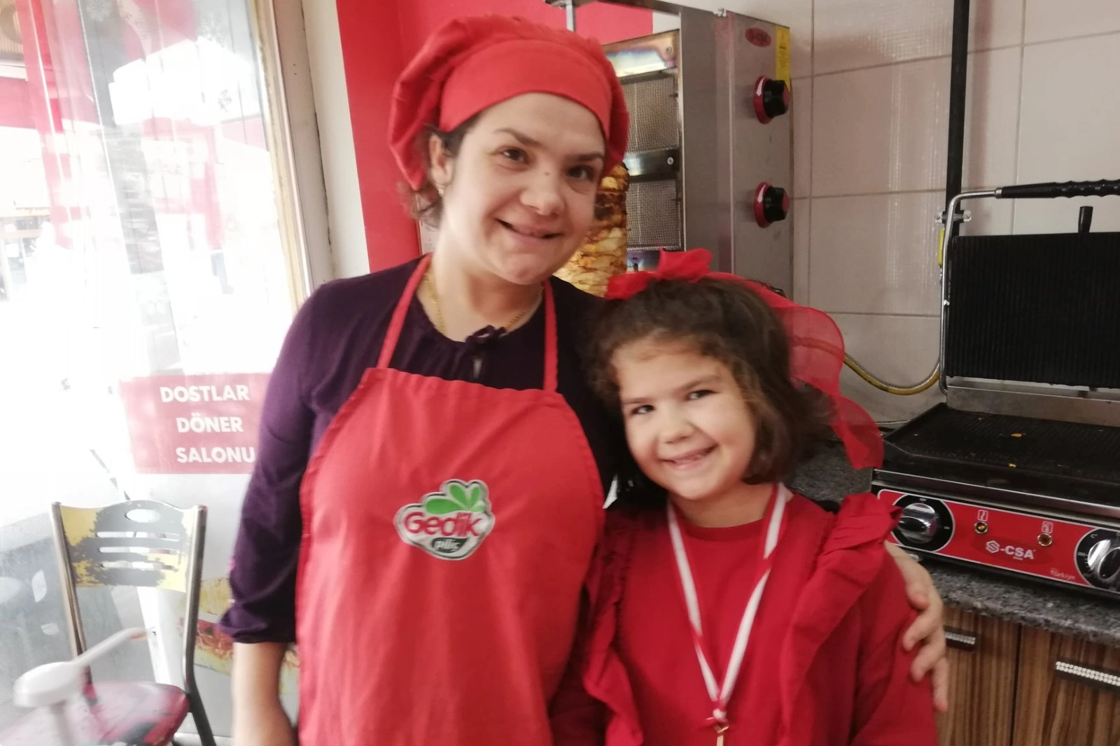 Gerçekten burası bizim ekmek teknemiz. Ailemizin tüm ihtiyaçları buradan karşılanıyor. Bu işin hakkını en güzel şekilde veriyoruz. 9 yıl içerisinde doğuma 1 hafta kala işimden ayrıldım. Kızımı dünyaya getirdiğimde beslemekte sıkıntı yaşamaya başlamıştım. Eşim iş yerinden eve döndüğünde kızım mama yemeye başlıyordu. Anladık ki kızım dönerin kokusunu istiyordu. Bu yüzden gündüzleri eşimin giydiği gömleği giyerek kızımı beslemeye başladım. 40’ıncı gününden sora kızımı da yanıma alarak işimin başına geçtim. Kızım Doğa Nur şu anda 8 yaşında okuldan sonra yine yanıma geliyor, biryandan derslerini yaparken, diğer yandan da müşterileri karşılıyor.”