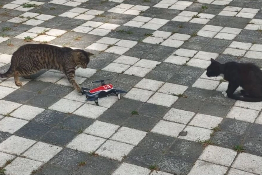 Tekirdağ’ın Süleymanpaşa ilçesinde haber çalışması için havalanan dronu fark eden bir grup meraklı kedi, dronun peşine düştü. Bir süre çekim yapan dronun ardından gezen kediler, dronu yakalamak için yarışa girdi. Dron kamerasına yansıyan sevimli kedilerin o anları eğlenceli görüntülere sahne oldu. Dronu yakalamayacaklarını anlayan kediler daha sonra bir köşeye çekilerek, cihazın yere inmesini bekledi. Kapatılan cihazın pervanelerini çevirmeye çalıştılar 4 koldan uçan cihazın peşinde düşerek, dronun yere indiğini fark eden kediler o alana yönelerek meraklı bakışlarla cihazı inceledi. Cihazın durgun vaziyette olduğunu anlayan kediler, zaman zaman cihazın pervanelerine vurarak çevirmeye çalışması tebessüm ettirdi. Sevimli kedilerin yere inen dron ile imtihanı ise başka kameralar tarafından saniye saniye kayıt altına alındı.