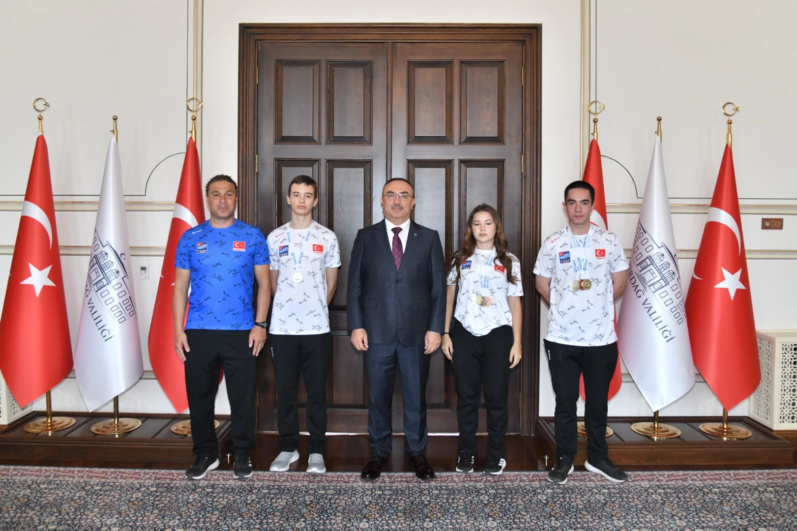 Vali Recep Soytürk, makamında kabul ettiği sporcularla bir süre sohbet ederek, sporcuları ve antrenörleri Sertan Aydın'ı tebrik etti.