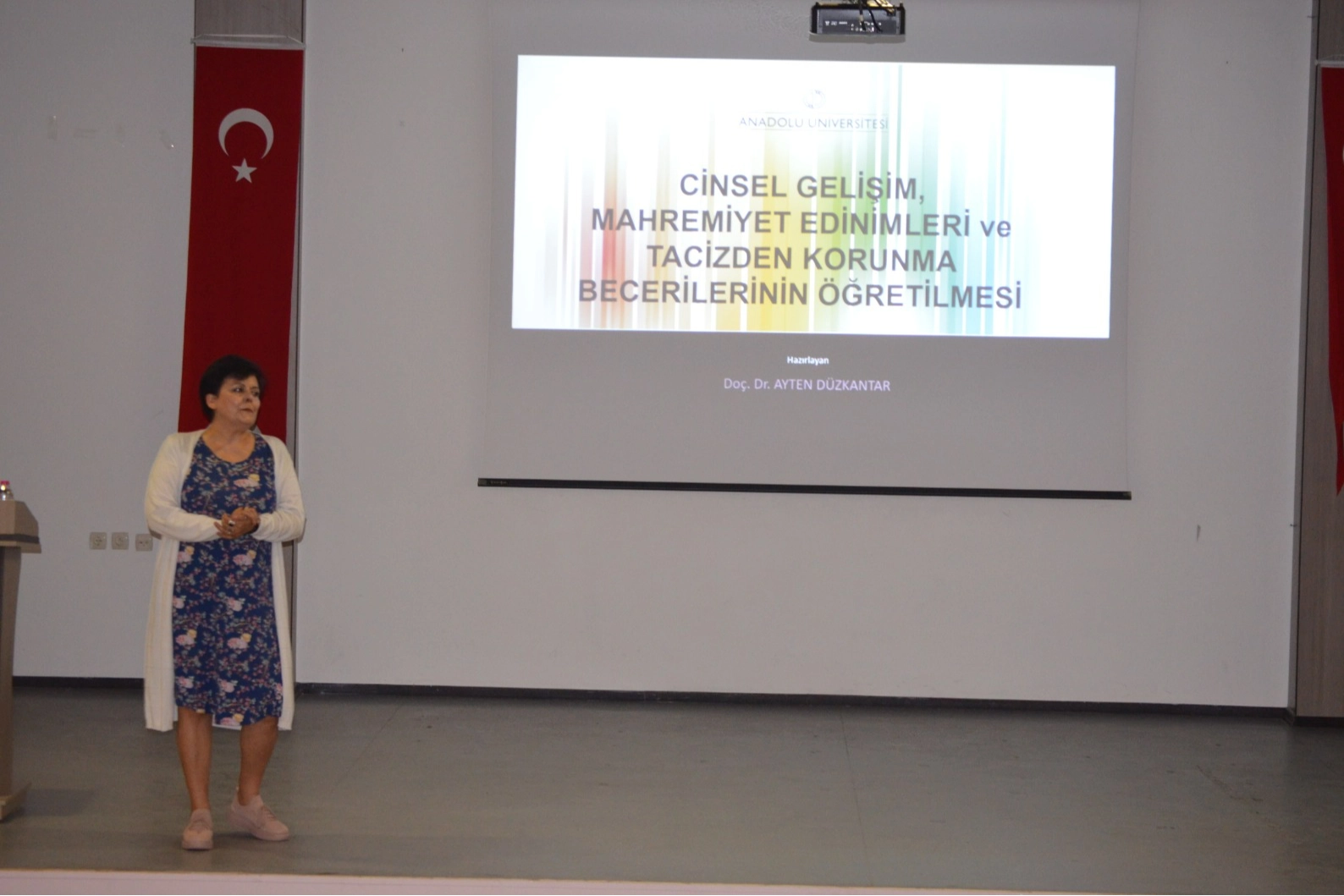 Cinsel eğitim hakkında açıklamalarda bulunan Anadolu Üniversitesi Öğretim Üyesi Doç. Dr. Ayten Düzkantar, “Dil gelişim alanı çocukta ne zaman desteklenmeye başlar? Doğar doğmaz desteklenir. Çünkü iletişim becerileri, sosyal gelişim doğar doğmaz başlar değil mi? Peki fiziksel gelişim destek çalışmaları ne zaman başlar? Doğar doğmaz başlar. Neden? Çünkü bir gelişim alanıdır. Peki duygusal gelişimin gelişimsel desteklenmesi ne zaman başlar o da doğar doğmaz. Peki cinsel gelişimin gelişimsel desteği ne zaman başlar? Doğar doğmaz desteklenmeli. Özellikle bizim özel gereksinimli çocuklarımız için birtakım şeylerin kalıcı biçimde öğrenilmesi ve davranışa dönüşmesi oldukça zor bir süreç. Cinsellik bütün toplumsal değerlerimize göre mahremiyet ve izinsiz ihlal kırmızı çizgi. Ama biz inatla bunun eğitimini vermemeye çalışıyoruz. Demek istediğim, cinselliğe yüklediğimiz saçma sapan anlam nedeniyle eğitim kitaplarından cinsel gelişimi, cinsel eğitim tamamen silip süpürmüşüz” sözlerine yer verdi.