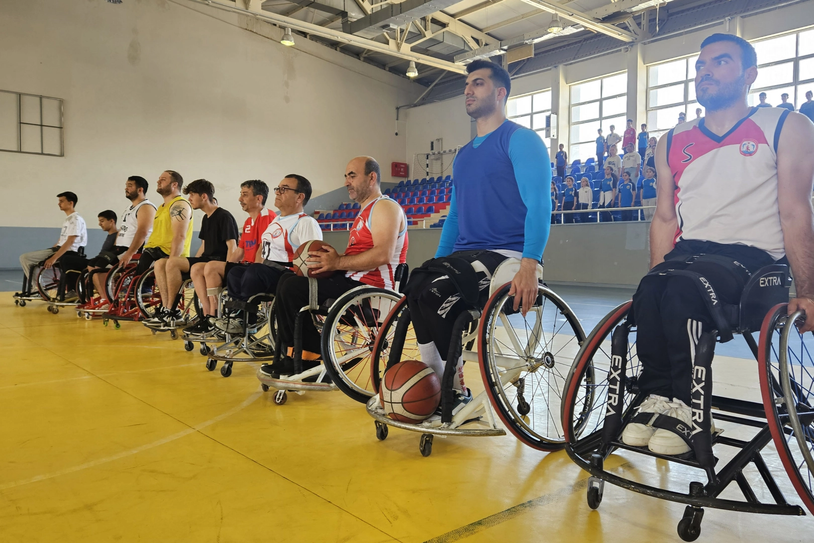 Müsabakanın ilk etabında öğrenciler tekerlekli sandalyeler ile engelli sporcularla müsabaka gerçekleştirdi.