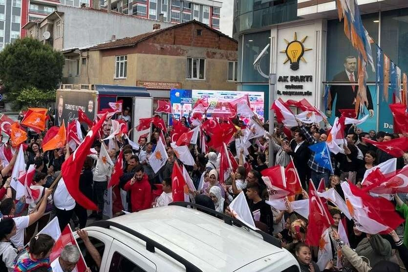 Abdurrahman Mahallesi’ndeki Edirne İl Başkanlığı binasında toplanan partililer bayrak ve flamalarla sokağa çıkarak zaferi kutluyor.