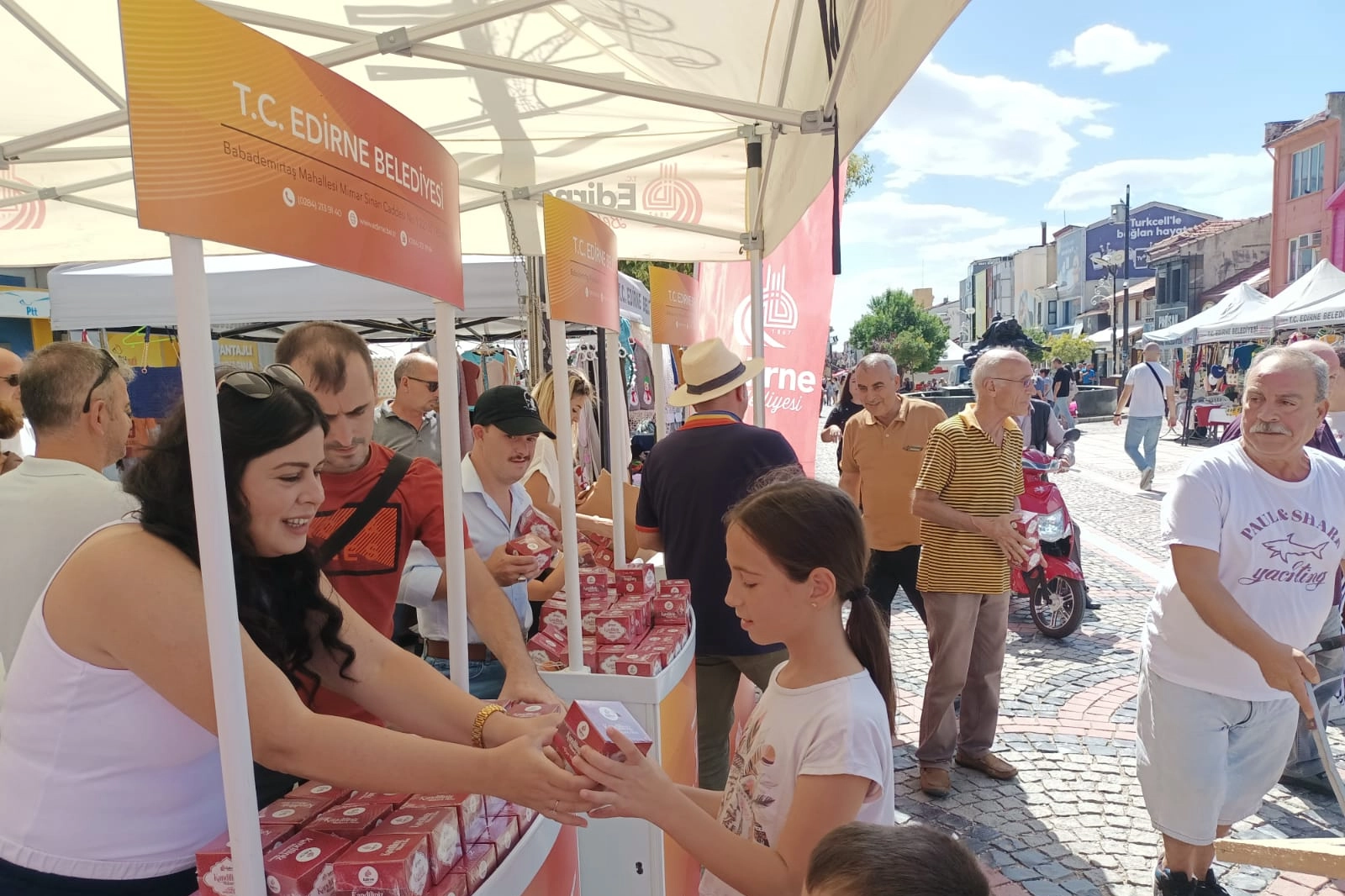 Edirne Belediyesi, Mevlid Kandili nedeniyle Saraçlar Caddesi’nde kadil simidi dağıttı. Belediye tarafından caddede kurulan stantlarda vatandaşlara kandil simidi dağıtılırken; caddedeki yurt dışından gelen turistler, Belediye Başkan Yardımcısı Dr. Ertuğrul Tanrıkulu ve belediye personeli tarafından dağıtılan kandil simidine ilgi gösterdiler.