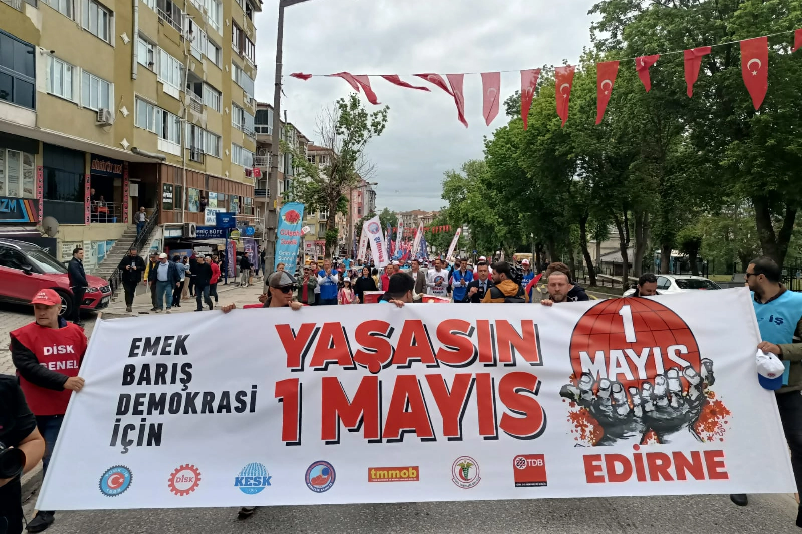 Edirne'de 1 Mayıs Emek ve Dayanışma Günü kutlamaları kapsamında konfederasyonlar, sendikalar, siyasi partiler, odalar ve sivil toplum örgütleri tarafından oluşturulan 1 Mayıs korteji yürüyüşe başladı.