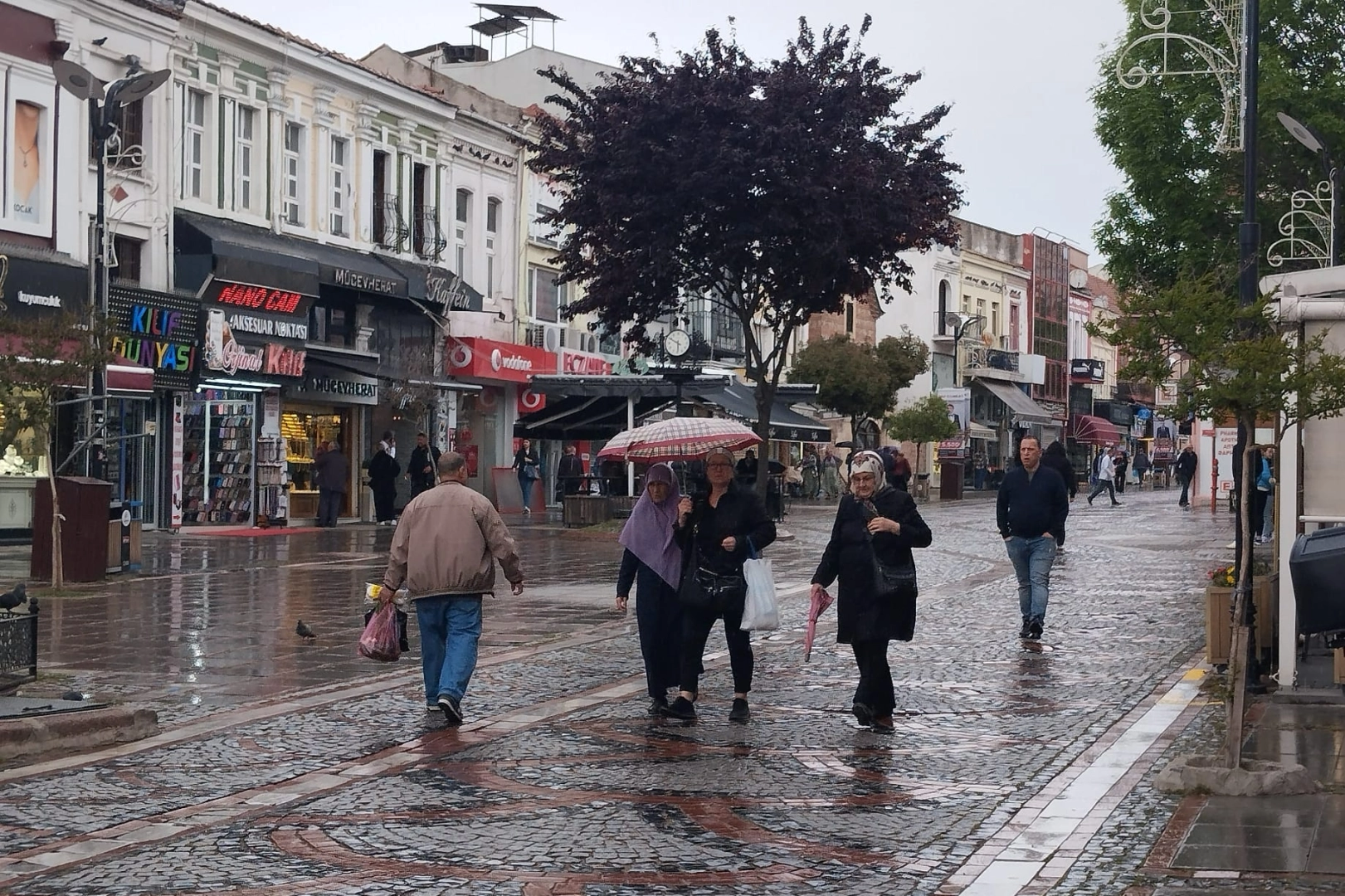 Edirne’de bugün öğleden sonra aralıklarla yağan yağmur etkili oluyor. Edirne çarşı merkezde bugün görülen yağışlarda bazı vatandaşlar iş merkezleri girişlerine ve saçak altlarına girerek korunmaya çalıştığı göze çarptı.
