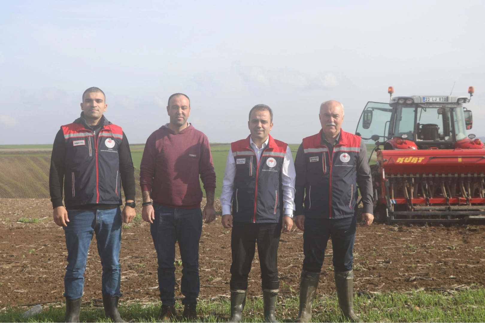 Merkez Sarayakpınar Köyü’ndeki çiftçilerden Dr. Birol Deviren’in tarlasında gerçekleştirilen denemelerde, üç farklı toprak işleme yönteminin buğday verimine etkisi inceleniyor. Çalışmalar, Ayçiçeği–Buğday münavebesinin çiftçi şartlarında uygulanabilirliğini gözlemlemek amacıyla yürütülüyor.