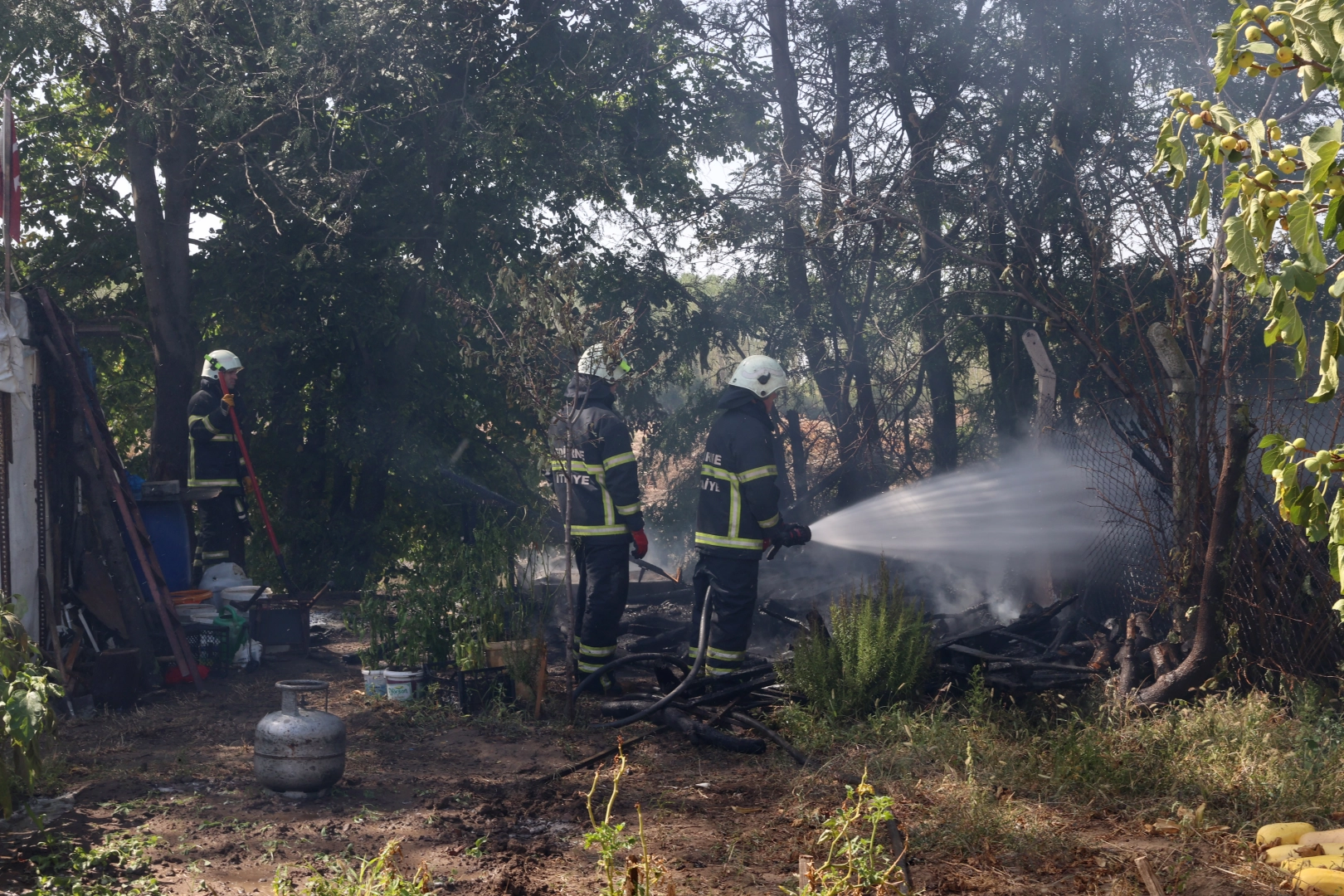 Yan taraftaki evin bahçesine de sıçrayan yangın, itfaiye ekipleri tarafından kontrol altına alınarak, söndürüldü.