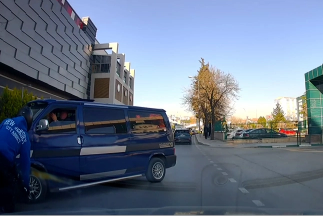 Minibüs şoförünün yanına giden motosiklet sürücüsü bu kez de tepkiyle karşılaştı. Motosiklet sürücüsüne öfkelenen minibüsün şoförü, olay yerinden ayrıldı.