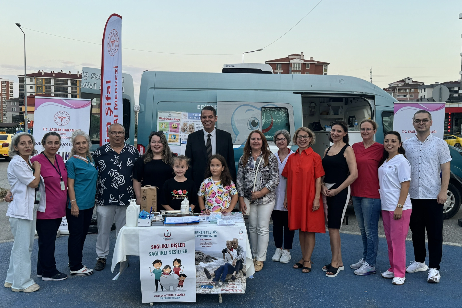 Aileleri ve çocukları bilgilendiren ekipler, mobil araçta da diş taraması gerçekleştirdi.