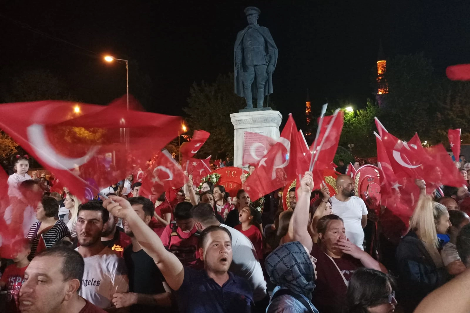 Akın, kürsüye çok sayıda çocukla birlikte çıkarken; Edirnelilerin 30 Ağustos Zafer Bayramı'nı kutladı. Akın, fener alayına katılanlaralar da teşekkür ederken; Türkiye Cumhuriyeti'nin kurucusu Mustafa Kemal Atatürk, silah arkadaşları ve tüm şehitleri andı.