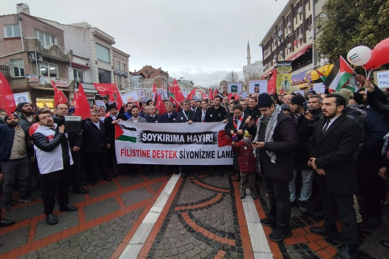 Filistin’e Destek Platformu üyeleri, Cuma Namazı çıkışı Eski Cami önünde toplanarak “Özgür Filistin” yürüyüşü düzenlediler. Eski Cami önünden başlayan yürüyüşe Trakya Üniversitesi Rektörü Prof. Dr. Erhan Tabakoğlu ve AK Parti Edirne İl Başkanı Belgin İba’da katıldı. Eski Cami önünden başlayan yürüyüş sırasıyla, Atatürk Bulvarı, Saraçlar Caddesi ve Postane önünde son buldu.