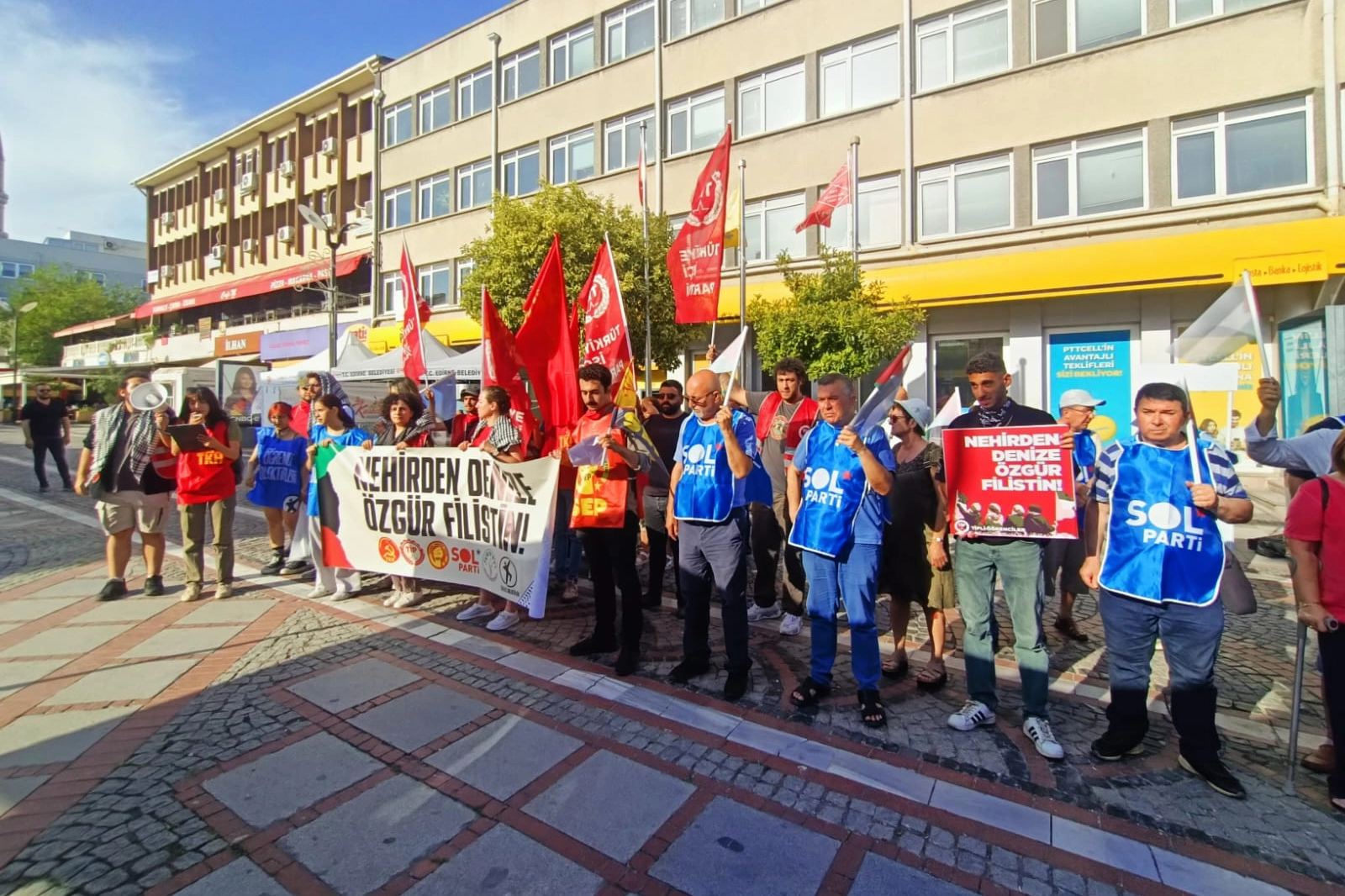Edirne’de Türkiye Komünist Hareketi (TKH), Türkiye İşçi Partisi (TİP), Sosyalist Emekçiler Partisi (SEP), SOL Parti, DEM Parti Gençlik Meclisleri ve Öğrenci Kolektifleri tarafından İsrail’in Filistin’de gerçekleştirdiği katliama karşı yürüyüş ve basın açıklaması düzenlendi.