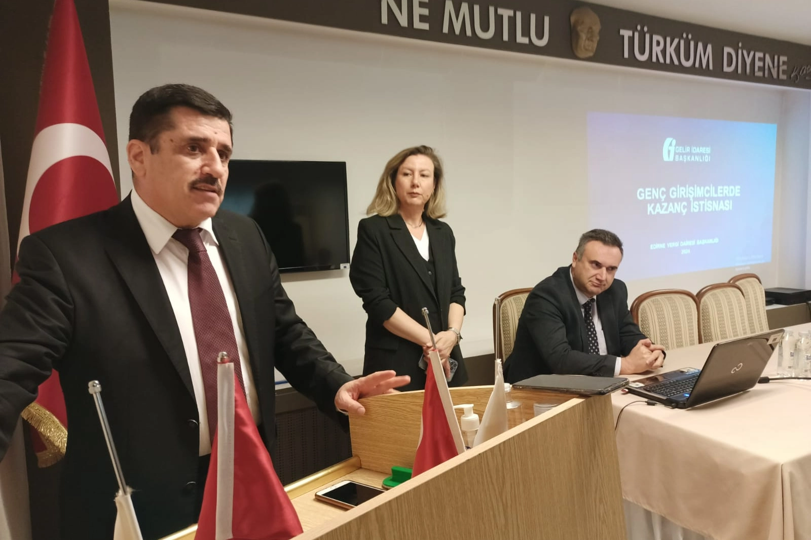 Konuşmaların ardından toplantı, Arda Vergi Dairesi Müdürü Vahit Yaşar Akın’ın ‘Genç Girişimcilere Kazanç İstisnası’ konulu sunumu ile devam etti.