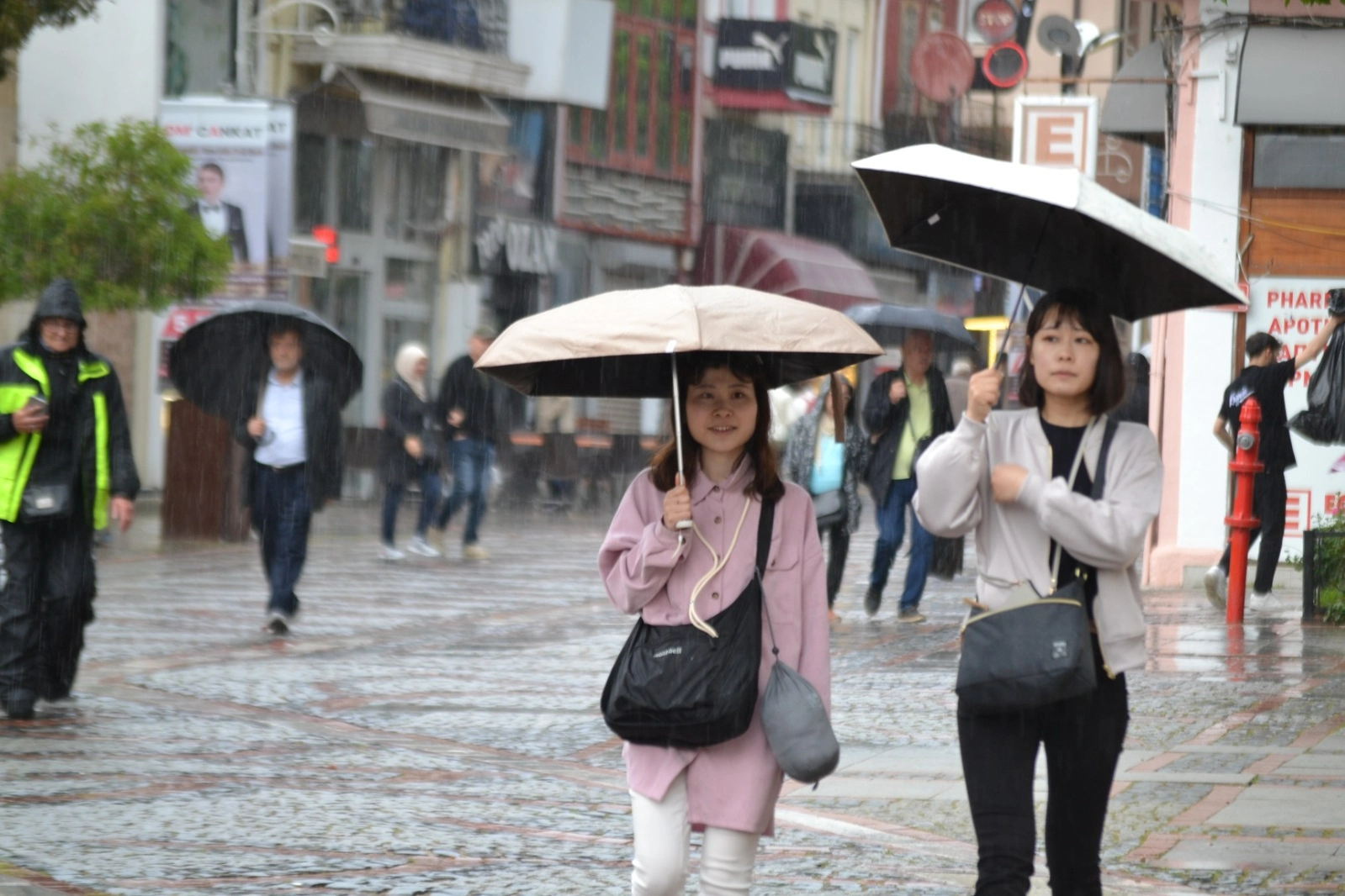 Edirne’de gök gürültülü sağanak yağmur yağışı başladı. Bugün saat 16.50 sıralarında başlayan yağmura vatandaşlar kentin trafiğe kapalı caddesi olan Saraçlar Caddesi’nde yakalandı.