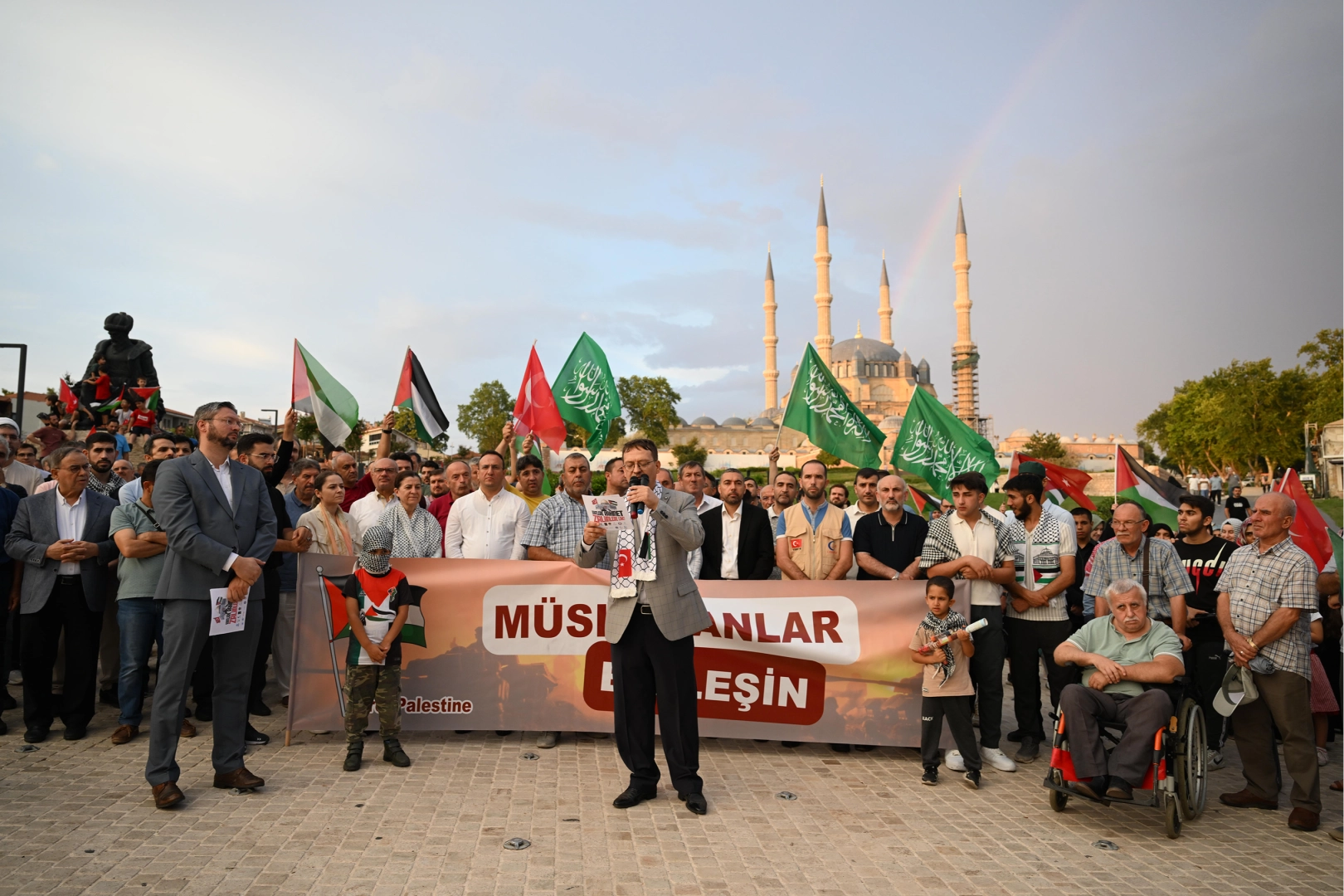 Edirne'de Hamas'ın Siyasi Büro Başkanı İsmail Heniyye'nin suikasta uğraması sebebi ile protesto edildi.