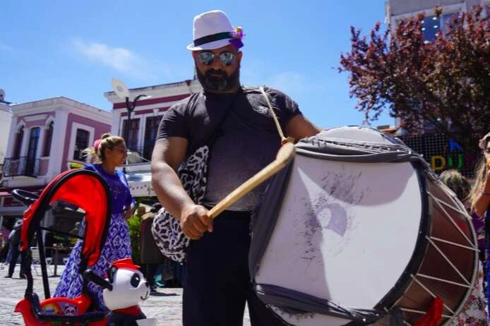 Renkli kıyafetleriyle yoğunluğun olduğu caddelerde vatandaşları Sarayiçi'nde yapılacak şenliklere davet eden Roman gruplar, davul zurna eşliğinde hareketli ezgileri ve danslarıyla da renkli görüntüler oluşturuyor.