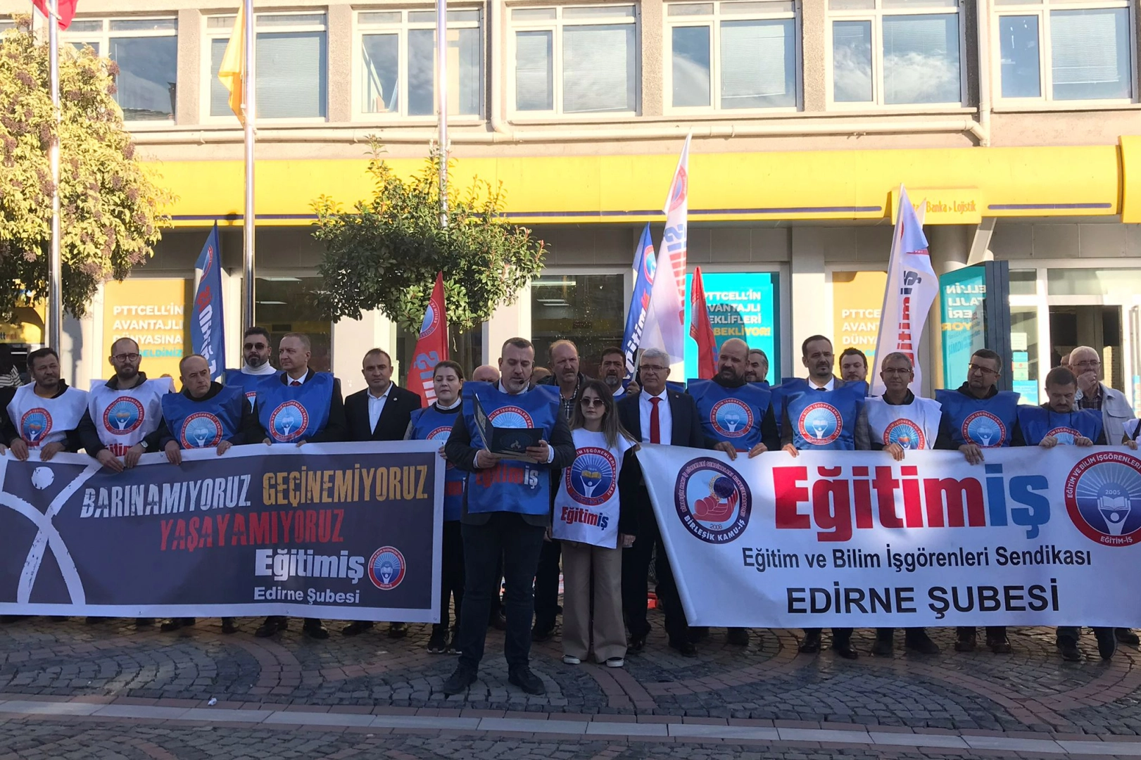 Eğitim ve Bilim İşgörenleri Sendikası (Eğitim-İş) Edirne Şubesi, 24 Kasım Öğretmenler Günü nedeniyle Saraçlar Caddesi’nde basın açıklaması gerçekleştirdi.