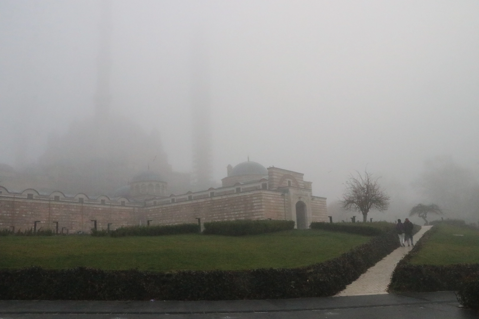 Selimiye Camisi başta olmak üzere kentteki birçok anıt eser, siste gözden kayboldu.