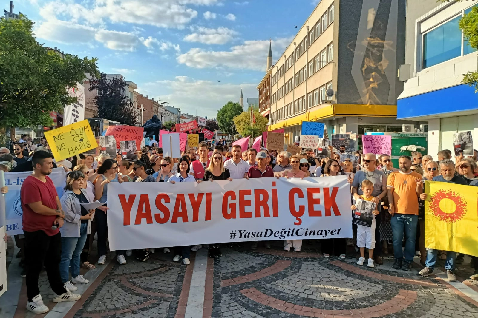 Basın açıklamasının ardından tüm katılımcılar, Saraçlar Caddesi’nde oturma eylemine başladı. Oturma eyleminin, TBMM’de yasa ile ilgili kararın açıklanmasına kadar devam edeceği belirtildi.