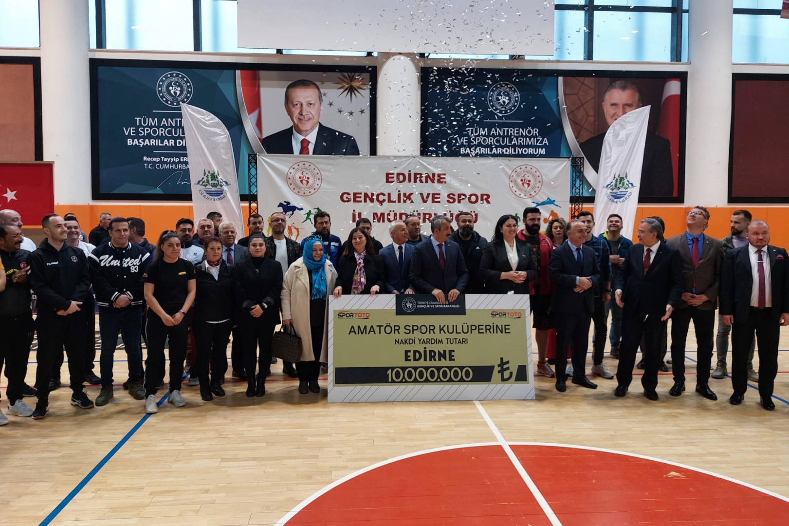 Edirne Spor Salonu'nda Edirne Valiliği koordinasyonuyla, Gençlik ve Spor Bakanlığı tarafından Amatör Spor Kulüpleri Nakdi Destek Töreni yapıldı. Törene Edirne Valisi Yunus Sezer, Edirne Gençlik ve Spor İl Müdürü Selim Ak, Edirne İl Mili Eğitim Müdürü Dr. Önder Arpacı, Edirne AK Parti Milletvekili Fatma Aksal, Cumhur İttifakı Edirne Belediye Başkan adayı Belgin İba, sporcular, antrenörler ve vatandaşlar katıldı. Program ilk olarak saygı duruşu ve İstiklal marşının okunmasıyla başladı. Daha sonra ise Edirne'de faaliyet gösteren spor kulüplerinin gösterileri ile devam etti.