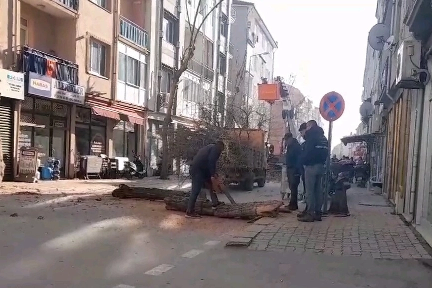 Edirne Belediyesi Park ve Bahçeler Müdürlüğü ekipleri, ağaç kesimi sırasında caddede geniş güvenlik önlemleri alarak caddeyi trafiğe kapattı. Vinç yardımıyla zincire bağlanan dev ağaçlar, itfaiye aracının merdiveniyle kesildi. Ancak kesim işlemi sırasında çevredeki insanlar, herhangi bir güvenlik önlemi alınmadan ağaç dallarının altından geçmeye çalıştı, bu da büyük bir güvenlik riski oluşturdu. Uzunkaldırım Caddesi'nde kısa süre içinde ağaç kesimini tamamlayan ekipler, kesilen ağaçların kalıntılarını temizleyerek caddeyi tekrar ulaşıma açtı. Edirne Belediyesi Park ve Bahçeler Müdürlüğü, ağaçların kuruduğu ve bu nedenle şiddetli rüzgar ve yağışla savrulma riski taşıdığı için kesildiğini belirtti.